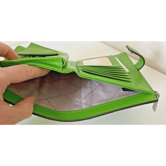 New Michael Kors Jet Set Travel Double Zip Wristlet Wallet Jungle Green
