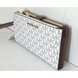 New Michael Kors Jet Set Travel Double zip wallet Signature Vanilla