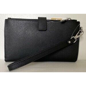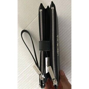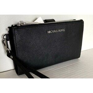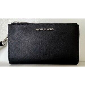 New Michael Kors Jet Set Travel Double zip wristlet Leather wallet Black /Silver