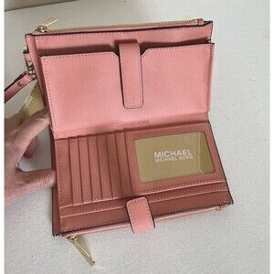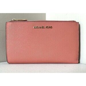 New Michael Kors Jet Set Travel Double zip wristlet Saffiano Leather Sherbert