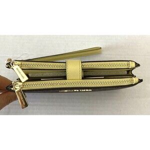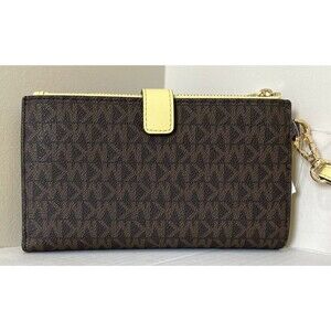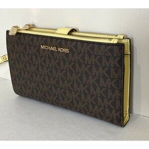 New Michael Kors Jet Set Travel Double zip wristlet wallet Brown / Buttercup