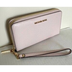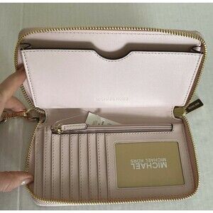 New Michael Kors Jet Set Travel Large Flat Phone Case Leather Powder Blush