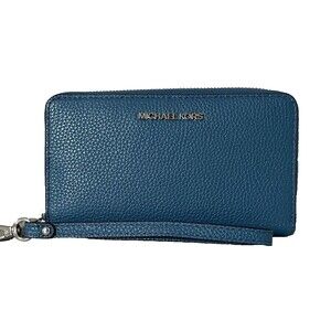 New Michael Kors Jet Set Travel Large Flat Phone Case Leather Teal