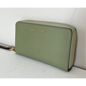 New Michael Kors Jet Set Travel Large Flat Phone Case Leather Wallet Light Sage