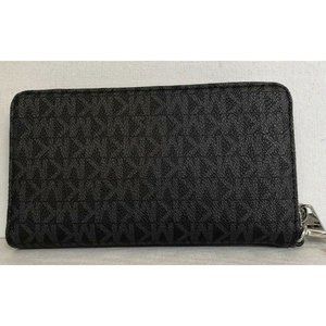New Michael Kors Jet Set Travel Large Flat Phone Case Logo Wallet Black