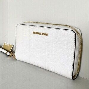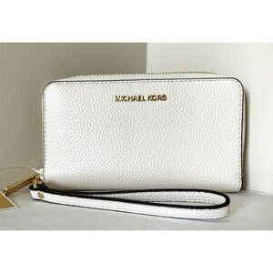 New Michael Kors Jet Set Travel Large Flat phone case Leather Light Cream