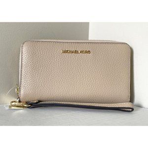 New Michael Kors Jet Set Travel Large Flat phone case Leather wallet Buff