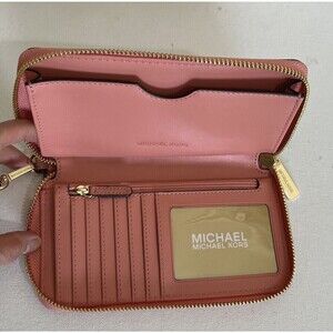 New Michael Kors Jet Set Travel Large Flat phone case Leather wallet Sherbert