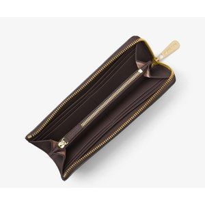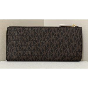 New Michael Kors Jet Set Travel Large Logo Quarter-Zip wallet Brown
