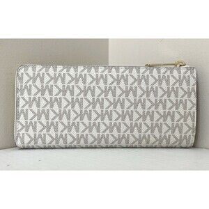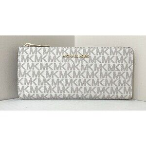 New Michael Kors Jet Set Travel Large Logo Quarter-Zip wallet Vanilla