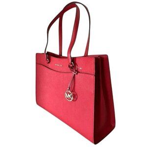 Michael Kors Jet Set Travel Large Saffiano Bright Red Leather Pocket Tote