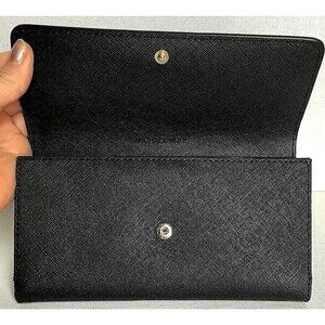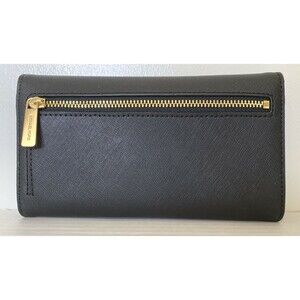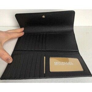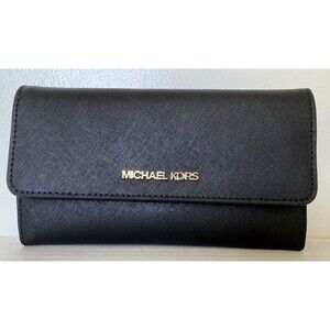 New Michael Kors Jet Set Travel Large Trifold Wallet Leather Black with Gold