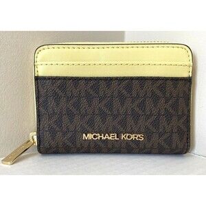 New Michael Kors Jet Set Travel Medium Card Case Wallet Brown / Buttercup