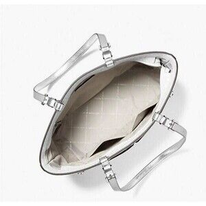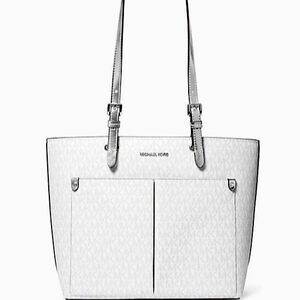 New Michael Kors Jet Set Travel Medium Double Pocket Logo Tote Optic White