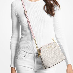 New Michael Kors Jet Set Travel Medium Logo Dome Crossbody Powder Blush Multi