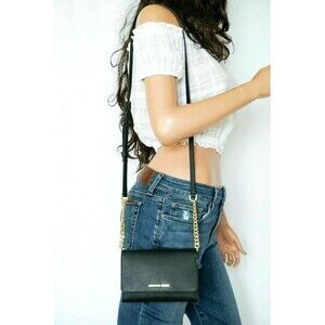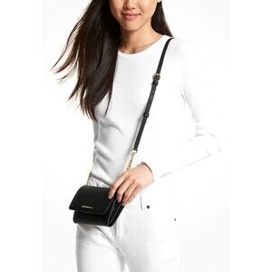 New Michael Kors Jet Set Travel Medium Phone Crossbody Saffiano Leather Black