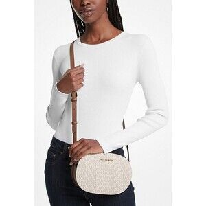 New Michael Kors Jet Set Travel Medium Signature Logo Crossbody Bag Vanilla