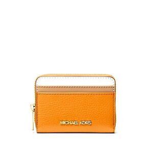 New Michael Kors Jet Set Travel Medium Zip Around Card Case Wallet Pop Orange