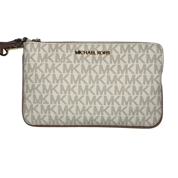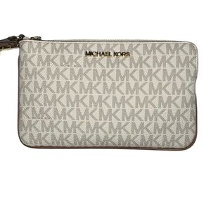 New Michael Kors Jet Set Travel Signature Logo Vanilla Large Wristlet