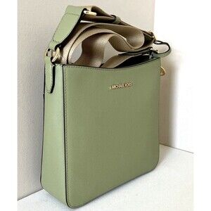 New Michael Kors Jet Set Travel Small Messenger Bag Faux Leather Light Sage