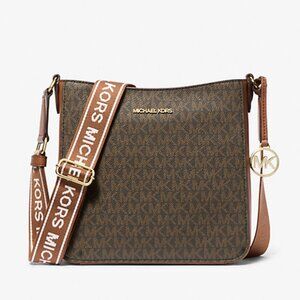 New Michael Kors Jet Set Travel Small Signature Logo Messenger Bag Brown