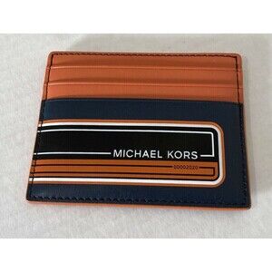 New Michael Kors Kent Tall card case Navy / Tangerine