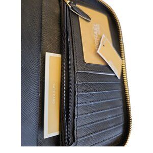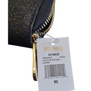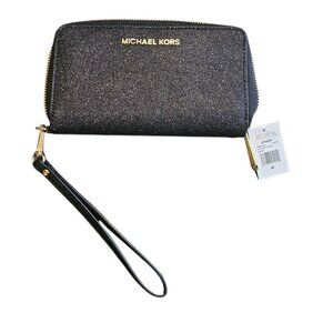 New Michael Kors Large Flat Multifunction Phone Case Wristlet Blk Glitter Wallet