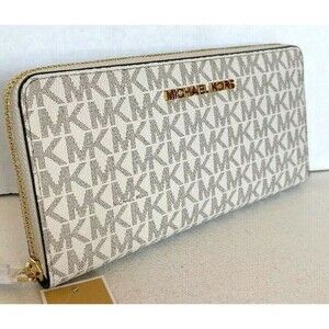 New Michael Kors Large zip around Continental wallet Logo Vanilla with Gift Box