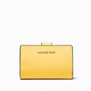 New Michael Kors Medium Crossgrain Leather Wallet Daisy Yellow