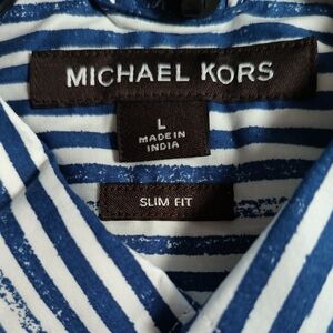 Elevate your style with this Michael Kors classic men's striped blue shirt. Perfect for both casual and formal occasions.
