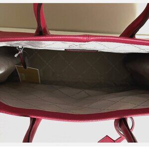 New Michael Kors Mirella Medium Pebbled Leather Tote Bag Dark Raspberry