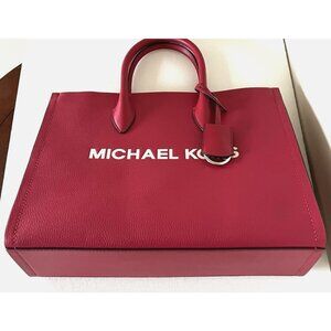 New Michael Kors Mirella Medium Pebbled Leather Tote Bag Dark Raspberry