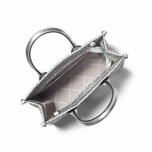 New Michael Kors Mirella Small Shopper Metallic Signature Logo Top Zip Crossbody