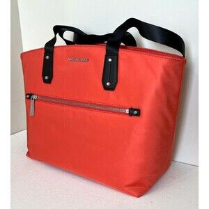 New Michael Kors Polly Medium Top Zip Nylon Tote Bag Mandarin
