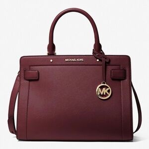 New Michael Kors Rayne Medium Saffiano Leather Satchel in Color Merlot