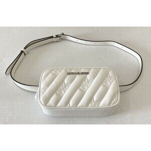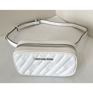 New Michael Kors Rose Belt Bag Quilted Vegan Leather Optic White