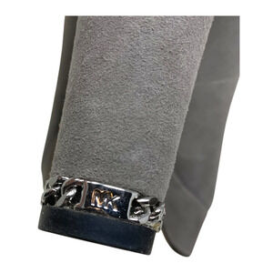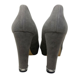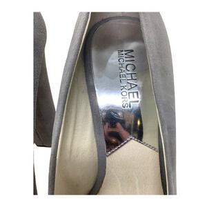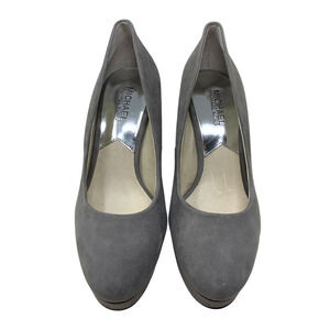 New Michael Kors Sabrina Steel Gray Suede Platform Pumps Sz 8.5 Chain Detail NWT