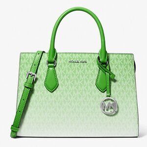 New Michael Kors Sheila Medium Ombré Signature Logo Satchel Jungle Green
