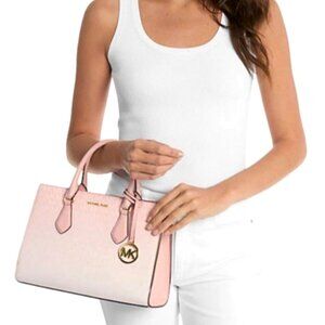 New Michael Kors Sheila Medium Ombré Signature Logo Satchel Powder Blush Multi