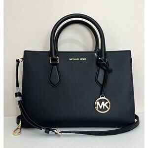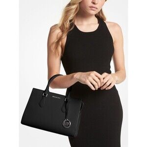 New Michael Kors Sheila Medium Saffiano Vegan Leather Satchel Black