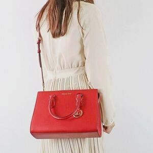 New Michael Kors Sheila Medium Saffiano Vegan Leather Satchel Bright Red