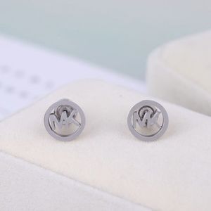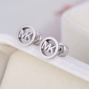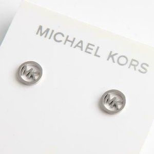 New Michael Kors Silver Logo Cut Off Stud Earrings