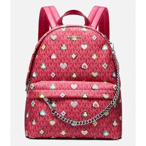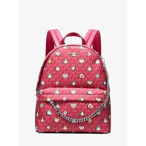 New Michael Kors Slater Medium Printed Signature Logo Backpack Dark Raspberry
