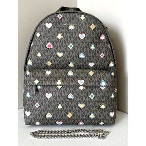 New Michael Kors Slater Medium Printed Signature Logo Backpack Olive