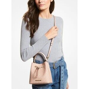 New Michael Kors Suri Small Bucket Crossbody bag Logo Coated Canvas Ballet