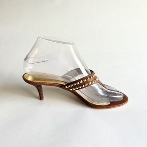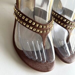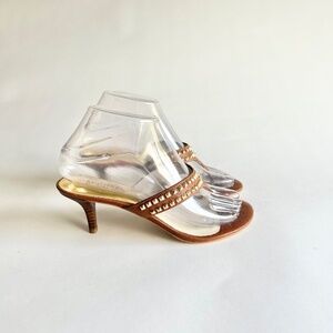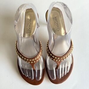 New Michael Kors Tan Leather Gold Metal Hardware Heeled Sandals size 6.5