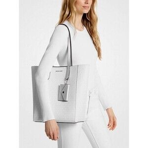 New Michael Kors Vincent Large Signature Logo Tote Bag with Coin Pouch Silver