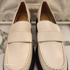 Modern loafer appeal goes to the next level in the sophisticated Rocco pumps by Michael Kors. Partner these must-haves with everything from tailored skirts to cropped denim. Color is called "Light Cream".