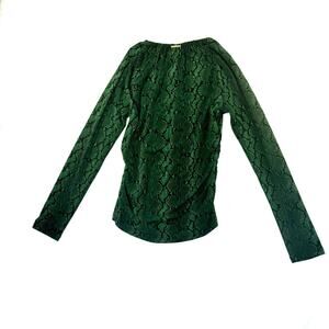 New Michael Kors Women's Top Green Black Snake Print Long Sleeve Pull-On Size M