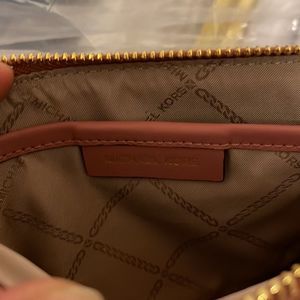• Gold-tone exterior hardware, 1 slip pocket & logo